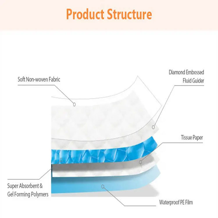 4) May kakayahang sumipsip ng ihi at iba pang likido nang maraming beses, upang mapanatiling tuyo at komportable ang ibabaw ng pad