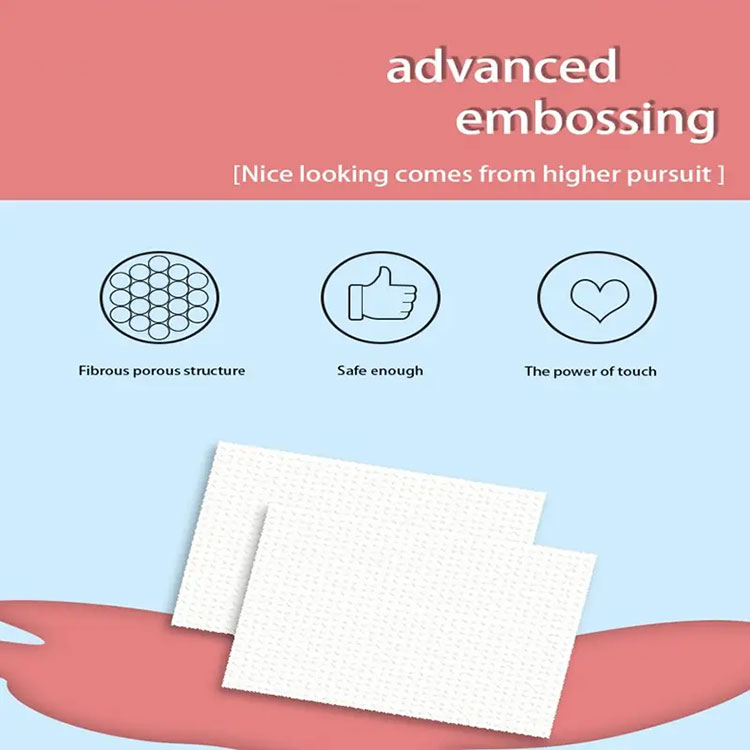 2) Ang absorbing layer ay binubuo ng fluff pulp na pinahiran ng tissue paper at high polymer absorbing resin. Ang mataas na polymer absorbing resin ay maaaring sumipsip ng likido na 100-150 beses na mas malaki kaysa sa bigat ng katas nito